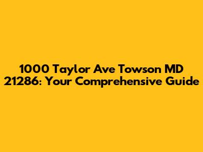 Alright guys, let's dive into everything you need to know about 1000 Taylor Ave, Towson, MD 21286. Whether you're planning a visit, expecting a package, or just curious about this address, this guide will provide you with a detailed overview. We'll cover its location, significance, and the surrounding area, ensuring you have all the essential information at your fingertips. Understanding the nuances of a specific address can be surprisingly useful, and weβre here to make it easy and engaging.