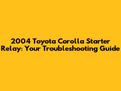 2004 Toyota Corolla Starter Relay: Troubleshooting & Replacement