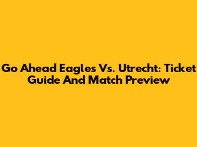 Go Ahead Eagles Vs. Utrecht: Ticket Guide And Match Preview