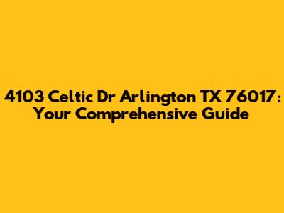 Hey guys! Looking for the lowdown on 4103 Celtic Dr in Arlington, Texas? You've landed in the right spot! This article dives deep into everything you need to know about this address, from its location and neighborhood vibes to potential property details and nearby amenities. Whether you're a prospective buyer, a curious neighbor, or just doing some real estate research, we've got you covered. So, let's get started and explore what 4103 Celtic Dr has to offer!
