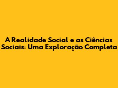 A Realidade Social E As Ciências Sociais: Uma Exploração Completa