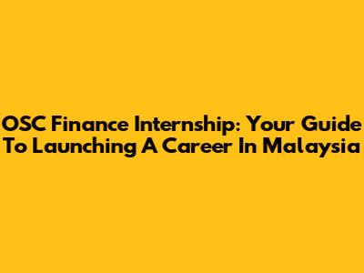 OSC Finance Internship: Your Guide To Launching A Career In Malaysia