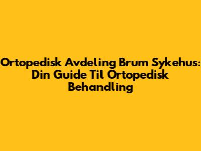 Ortopedisk Avdeling Brum Sykehus: Din Guide Til Ortopedisk Behandling
