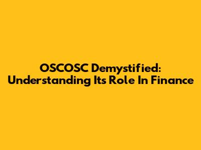 OSCOSC Demystified: Understanding Its Role In Finance