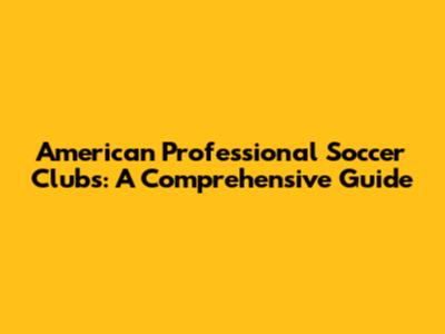 American Professional Soccer Clubs: A Comprehensive Guide