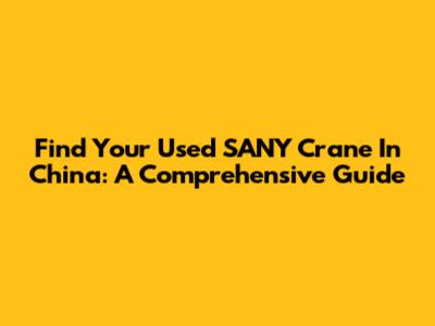 Find Your Used SANY Crane In China: A Comprehensive Guide