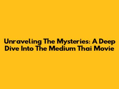 Unraveling The Mysteries: A Deep Dive Into 'The Medium' Thai Movie