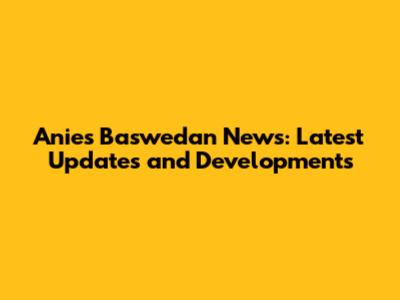 Anies Baswedan News: Latest Updates And Developments