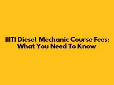 IIITI Diesel Mechanic Course Fees: What You Need To Know
