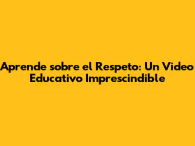 Aprende Sobre El Respeto: Un Video Educativo Imprescindible