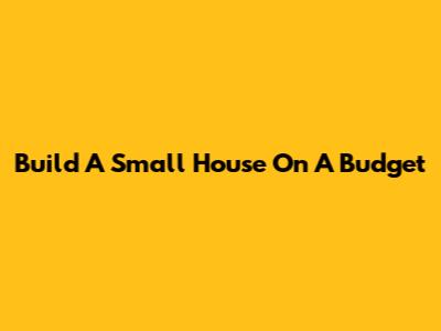 Build A Small House On A Budget