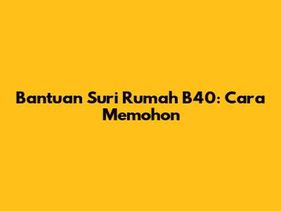Remember, it's important to stay informed about the latest updates and requirements for the Bantuan Suri Rumah B40, as these can change over time. Keep an eye on official announcements and guidelines to ensure that you have the most accurate information.