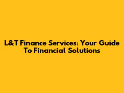 L&T Finance Services: Your Guide To Financial Solutions