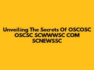 Unveiling The Secrets Of OSCOSC OSCSC SCWWWSC COM SCNEWSSC