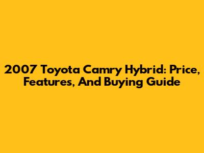 2007 Toyota Camry Hybrid: Price, Features, And Buying Guide