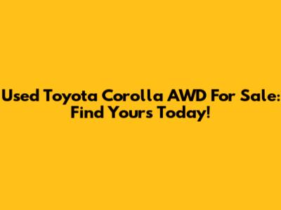 Used Toyota Corolla AWD For Sale: Find Yours Today!