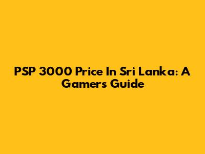 PSP 3000 Price In Sri Lanka: A Gamer's Guide