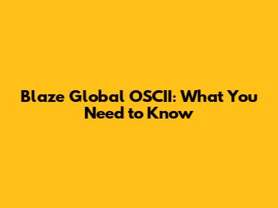 Blaze Global OSCII: What You Need To Know