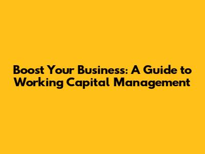 Boost Your Business: A Guide To Working Capital Management