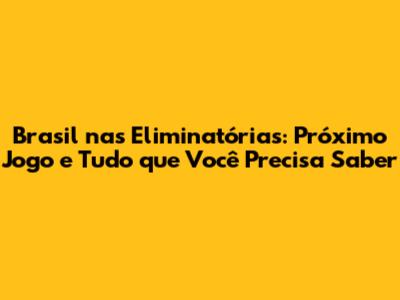 Próximo Jogo do Brasil nas Eliminatórias: Detalhes Essenciais