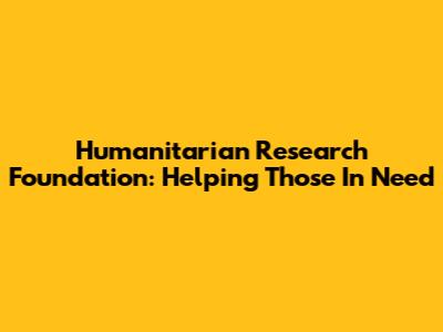 Humanitarian Research Foundation: Helping Those In Need