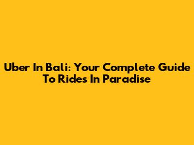 Uber In Bali: Your Complete Guide To Rides In Paradise
