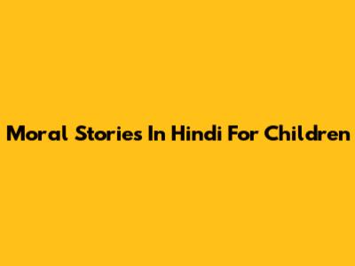 Moral Stories In Hindi For Children