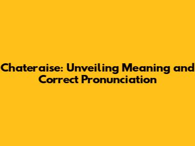 Chateraise: Unveiling Meaning And Correct Pronunciation