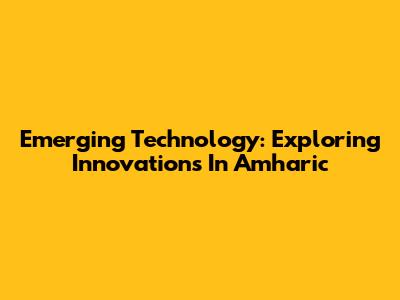 Emerging Technology: Exploring Innovations In Amharic