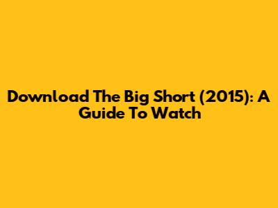 Download The Big Short (2015): A Guide To Watch