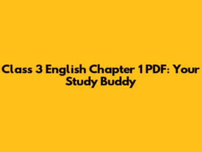 Class 3 English Chapter 1 PDF: Your Study Buddy