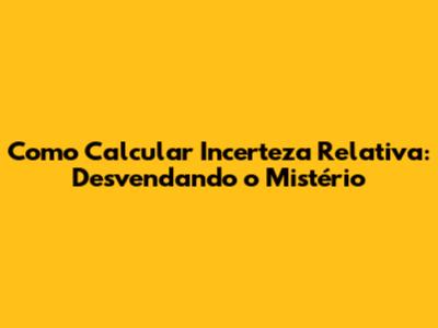 Como Calcular Incerteza Relativa: Desvendando O Mistério