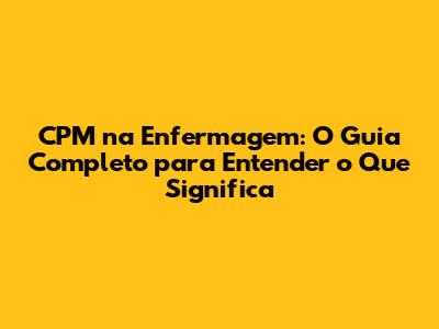 E aí, pessoal! Se você está se aventurando no mundo da enfermagem ou já faz parte dele, provavelmente já ouviu falar de CPM. Mas, afinal, o que diabos significa CPM na enfermagem? Relaxa, que neste guia completo, vamos desvendar todos os mistérios por trás dessa sigla, desde o significado básico até a sua importância na prática clínica. Prepare-se para uma imersão no universo do CPM e descubra como ele pode impactar a sua carreira e o cuidado aos pacientes. Bora lá?
