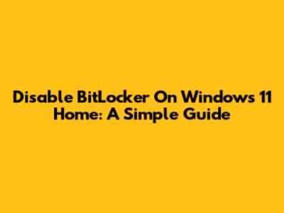 Disable BitLocker On Windows 11 Home: A Simple Guide