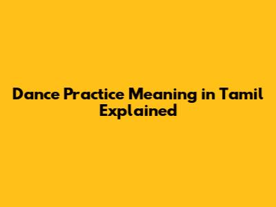 Dance Practice Meaning In Tamil Explained