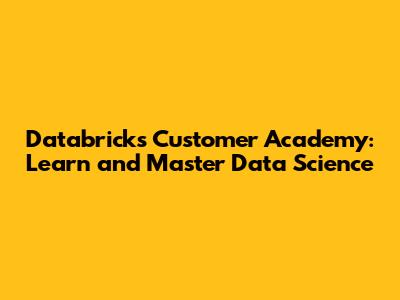 Databricks Customer Academy: Learn And Master Data Science