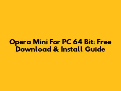 Opera Mini For PC 64 Bit: Free Download & Install Guide