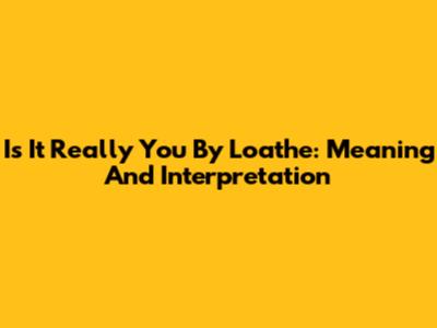 Is It Really You By Loathe: Meaning And Interpretation