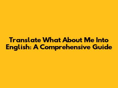 Translate 'What About Me' Into English: A Comprehensive Guide