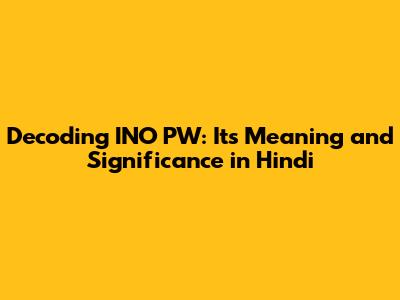 Decoding INO PW: Its Meaning And Significance In Hindi