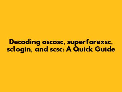 Decoding Oscosc, Superforexsc, Sclogin, And Scsc: A Quick Guide