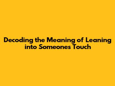 Have you ever wondered what it means when someone leans into your touch? This subtle gesture can speak volumes, conveying a range of emotions and intentions. Understanding the nuances of this nonverbal cue can significantly enhance your interpersonal relationships and social awareness. In this article, we'll delve into the various interpretations behind leaning into someone's touch, helping you decipher the underlying messages and respond appropriately. So, let's get started and unravel the mystery of this fascinating human behavior, guys!