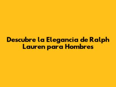 Descubre La Elegancia De Ralph Lauren Para Hombres