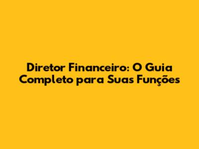 Diretor Financeiro: O Guia Completo Para Suas Funções