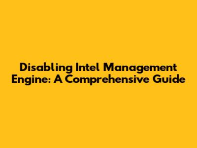 Disable Intel Management Engine: A Comprehensive Guide