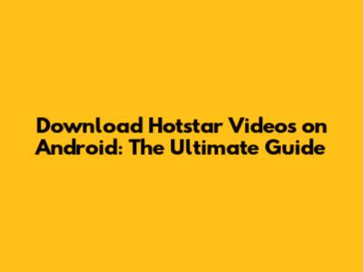 Download Hotstar Videos On Android: The Ultimate Guide