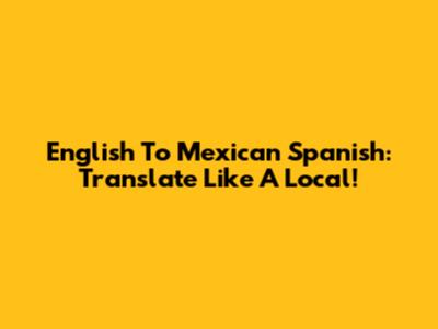 English To Mexican Spanish: Translate Like A Local!