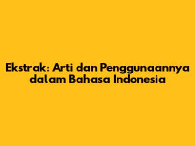 Ekstrak: Arti Dan Penggunaannya Dalam Bahasa Indonesia