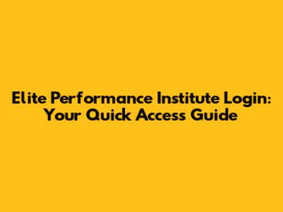 Elite Performance Institute Login: Your Quick Access Guide