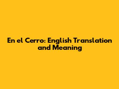 En El Cerro: English Translation And Meaning